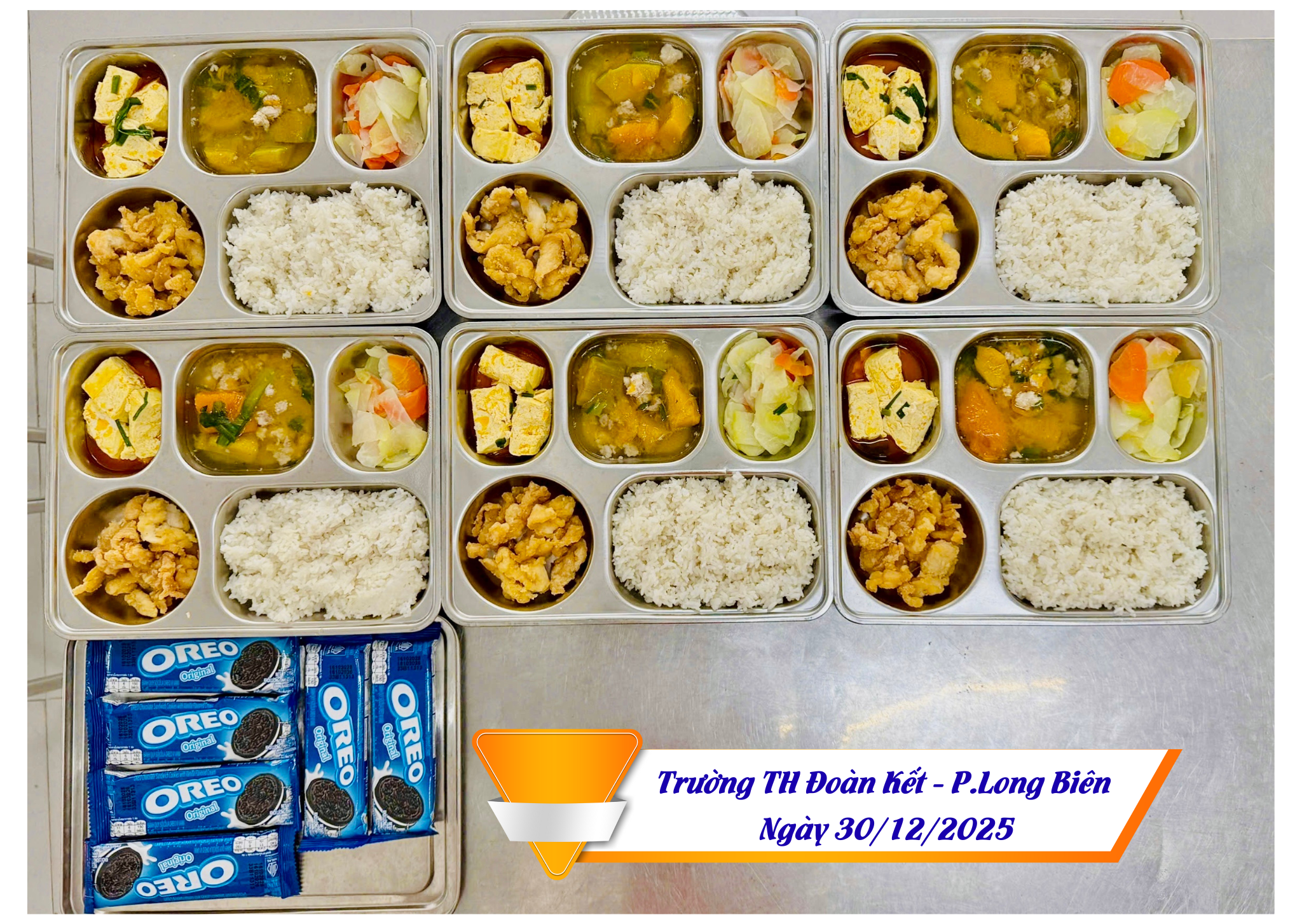 Hình ảnh suất ăn ngày 30/12/2025 của HS trường TH Đoàn Kết, phường Long Biên, HN