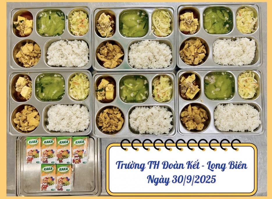 Hình ảnh suất ăn ngày 30/9/2025 của học sinh trường TH Đoàn Kết, phường Long Biên