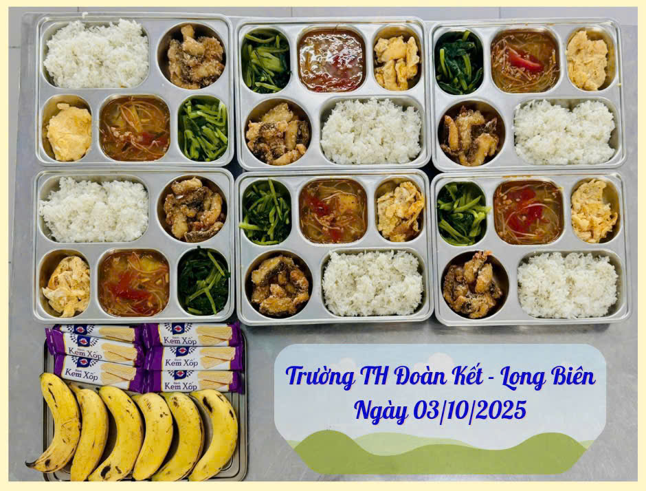 Suất ăn ngày 03/10/2025 của học sinh trường TH Đoàn Kết, phường Long Biên, HN