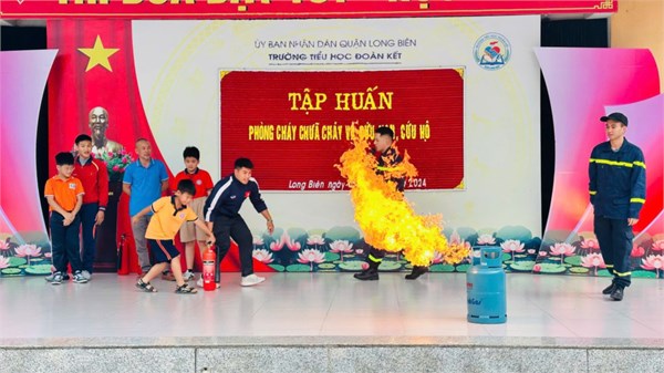 Tập ảnh : Trường Tiểu học Thạch Bàn A, Tiểu học Thạch Bàn B, Tiểu học Đoàn Kết phối hợp với Phòng cảnh sách PCCC &CNCH Công an Thành phố Hà Nội tổ chức diễn tập Phòng cháy chữa cháy và cứu nạn, cứu hộ.