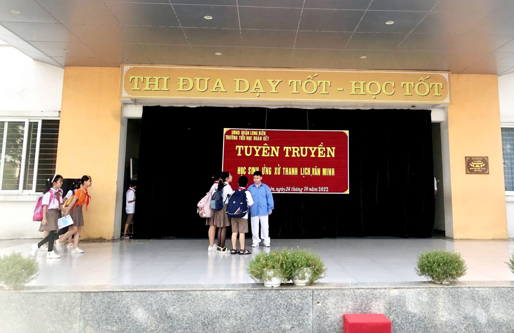 Từ xưa nhân dân ta đã đúc kết rất nhiều câu ca dao hay nói về sự tinh tế, thanh lịch, nhã nhặn trong lời ăn, tiếng nói, trong văn hóa ứng xử của người Hà Nội xưa như "Người thanh nói tiếng cũng thanh" hay "Chẳng thơm cũng thể hoa nhài - Dẫu không thanh lịch cũng người Tràng An ", "Lời nói chẳng mất tiền mua - Lựa lời mà nói cho vừa lòng nhau". Với mục đích giáo dục giá trị truyền thống, nét đẹp văn hóa ứng xử của người Hà Nội xưa, sáng ngày 24 tháng 10 năm 2022 trong buổi sinh hoạt dưới cờ, liên đội trường Tiểu học Đoàn Kết đã tổ chức buổi Tuyên truyền học sinh ứng xử thanh lịch, văn minh. Với các tình huống cụ thể trên sân khấu, các em học sinh được trao đổi, thảo luận, qua phần định hướng. Các em xem tiểu phẩm để rút ra nhiều bài học khác nhau như: văn hóa chào, văn hóa cảm ơn, xin lỗi, văn hóa xếp hàng, kĩ năng ứng xử hài hòa để không có mâu thuẫn, biết giúp đỡ người khác...