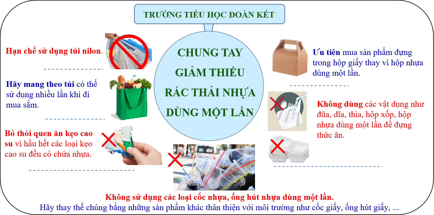 Rác thải nhựa hay còn gọi là “ô nhiễm trắng” đang là hiểm họa môi trường toàn cầu. Chúng đang hàng ngày, hàng giờ tác động tiêu cực đến chất lượng môi trường sống, sức khỏe con người, hệ sinh thái và sự phát triển bền vững của mỗi quốc gia trên toàn thế giới. Thấy được những ảnh hưởng vô cùng to lớn đó, Ban giám hiệu nhà trường chỉ đạo các tổ chuyên môn triển khai tuyên truyền về tác hại của rác thải nhựa và cách giảm thiểu tối đa việc sử dụng các sản phẩm được làm từ nhựa, đặc biệt là nhựa dùng một lần thông qua việc dạy học lồng ghép ở các tiết học chính khóa và ngoại khóa đến tất cả các học sinh.