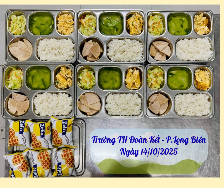 Hình ảnh suất ăn ngày 14/10/2025 của học sinh trường TH Đoàn Kết, phường Long Biên