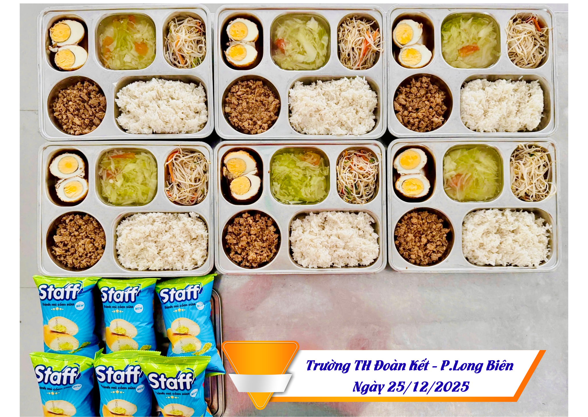 Hình ảnh suất ăn ngày 26/12/2025 của HS trường TH Đoàn Kết, phường Long Biên, HN